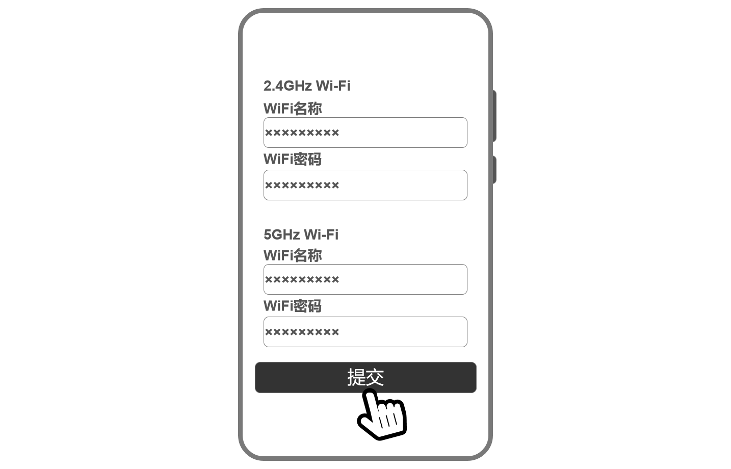 2.跟据您的需求,修改WiFi名称或密码,然后点击下方“提交”按钮。