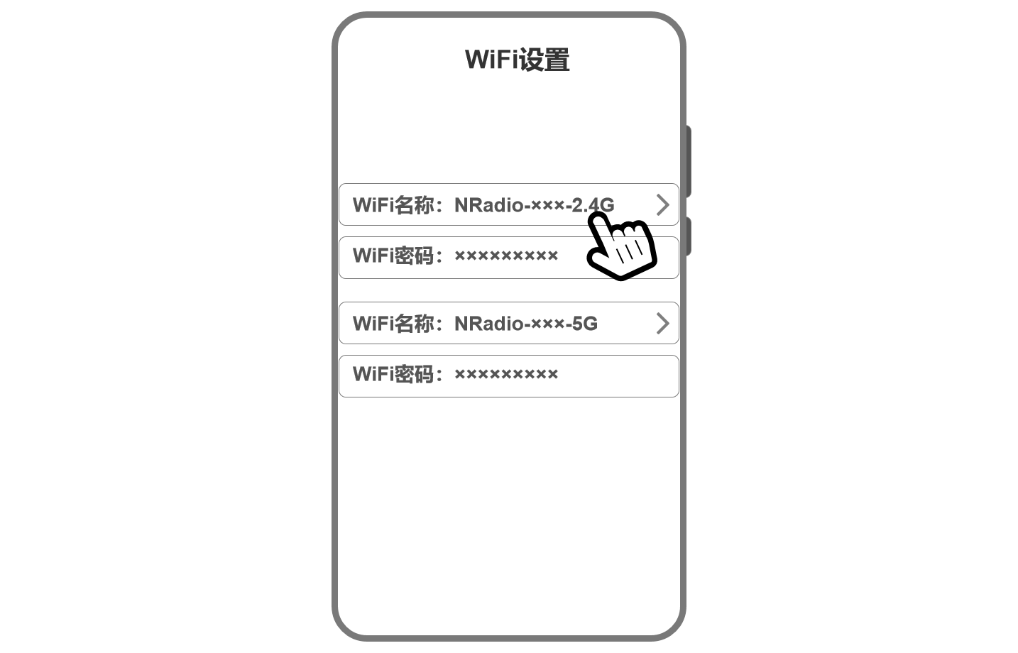 待信号灯长亮后,连接@NRadio开头的WiFi,默认密码12345678。